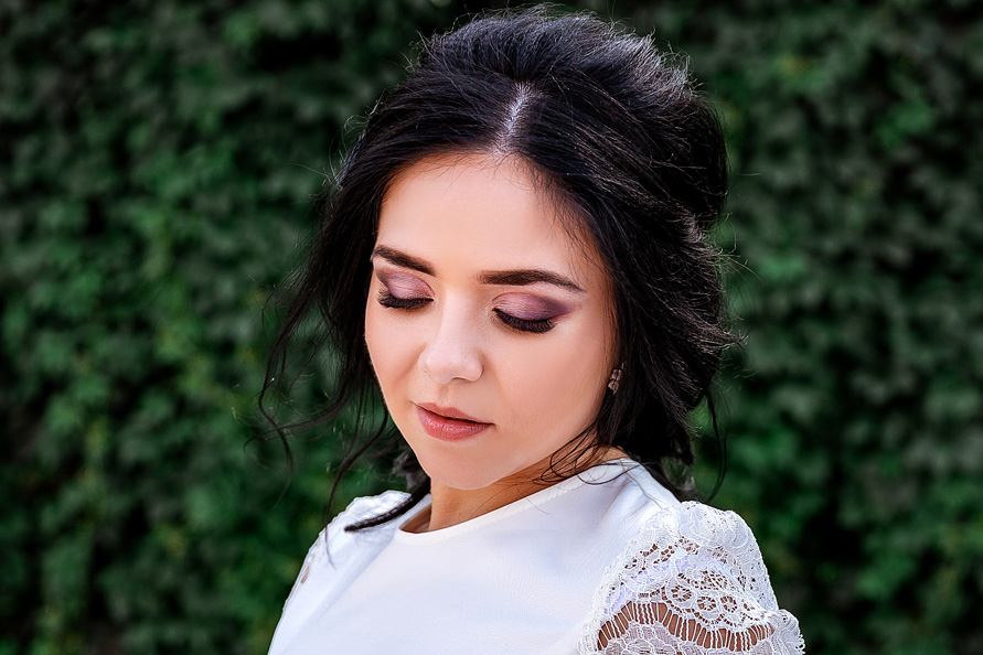 Особенное внимание уделите бровям. Перед фотографированием их лучше подкрасить не карандашом, а тенями, тщательно расчесать и закрепить капелькой мусса для волос (не геля и не лака, чтобы не было блеска). Над симметричностью бровей поработайте особенно тщательно.